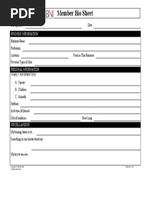 Bni Member Bio Sheet Bni Pdf